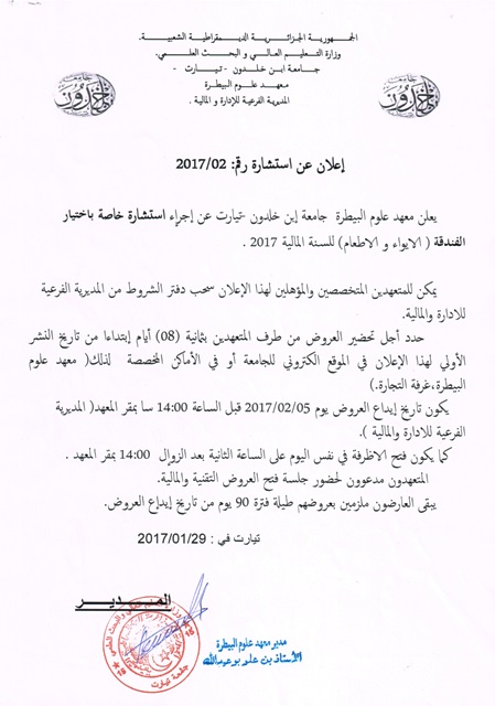 مديرية جامعة ابن خلدون تيارت مقابل ساحة جيش التحرير الوطني طريق الجزائر ص ب 78 تيارت الجزائر