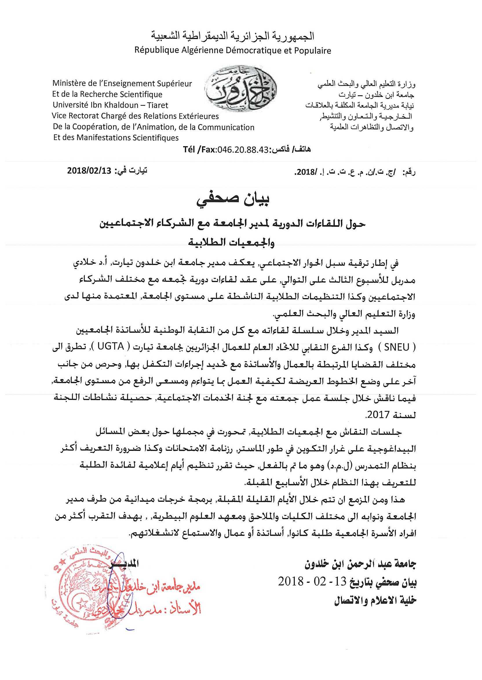 تجدر الاشارة ان النشاط عرف حضورا مميزا لاساتذة من خارج اصوار الجامعة على غرار جامعة الجزائر 2, جامعة البويرة,جامعة سعيدة وجامعة الجلفة.