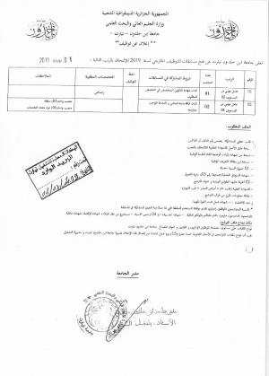 نشر في 03-07-2019من طرف دامين سمير المصلحة كلية الآداب و اللغات تعلن جامعة ابن خلدون تيارت عن فتح مسابقات للتوظيف الخارجي لسنة 2019