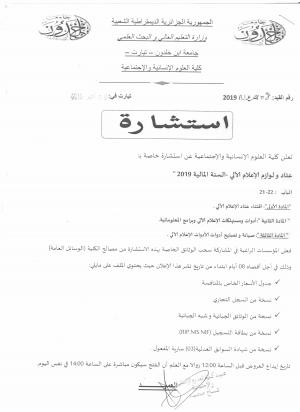 نشر في 07-10-2019من طرف خضار محمد المصلحة كلية العلوم الإنسانية و الإجتماعية