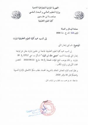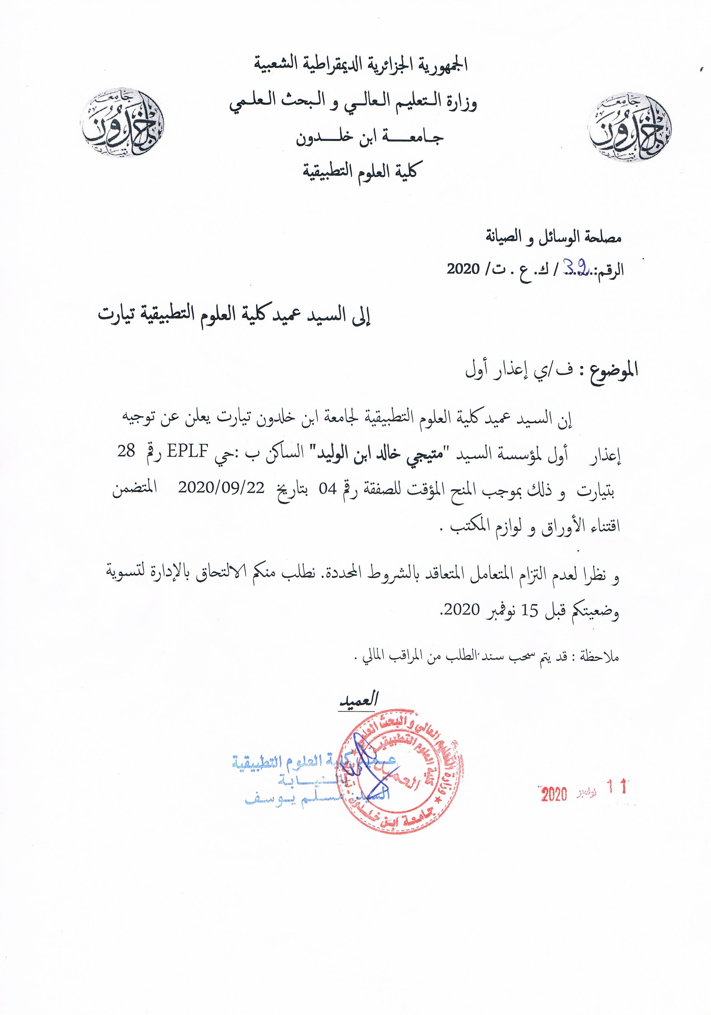 administration@univ-tiaret.dz الهاتف : +213(0)46 25 61 33