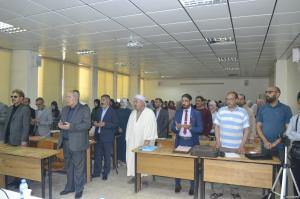 افتتحت أشغال الندوة بتلاوة عطرة من الذكر الحكيم، تلاها الاستماع الى النشيد الوطني ، ثم مباشرة الوقوف دقيقة صمت على روح شهيد العلم أ.د. العبادي عبد الحق الذي توفي منذ أيام قليلة.