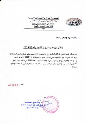 إعلان عن عدم جدوى للاستشارة رقم 2023/13