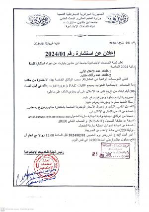 نشر في 25-01-2024من طرف درياس الجيلالي المصلحة الأمانة العامة تعلن لجنة الخدمات الاجتماعية لجامعة ابن خلدون بتيارت عن اجراء استشارة للسنة المالية 2024 الخاصة -اقتناء عتاد الإعلام الآلي - اقتناء عتاد وأثاث مكتب