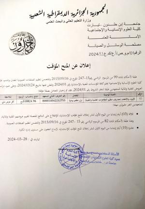نشر في 28-03-2024من طرف دلال عبيدة المصلحة كلية العلوم الانسانية و العلوم الاجتماعية المزيد من التفاصيل