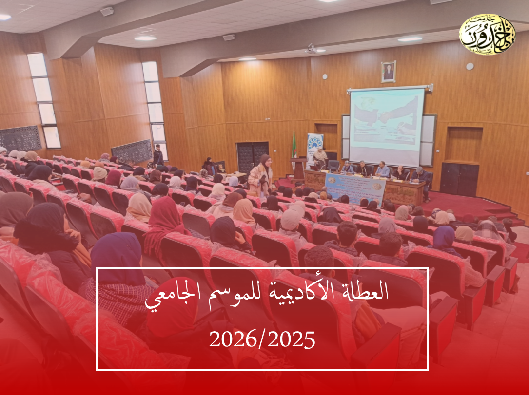 تنهي جامعة ابن خلدون تيارت الى علم جميع الطلبة الراغبين في الاستفادة من العطلة الأكاديمية , أنهم مدعوون الى ايداع طلباتهم من خلال الأرضية الرقمية المخصصة لذلك, وهذا قبل تاريخ 05 جانفي 2026