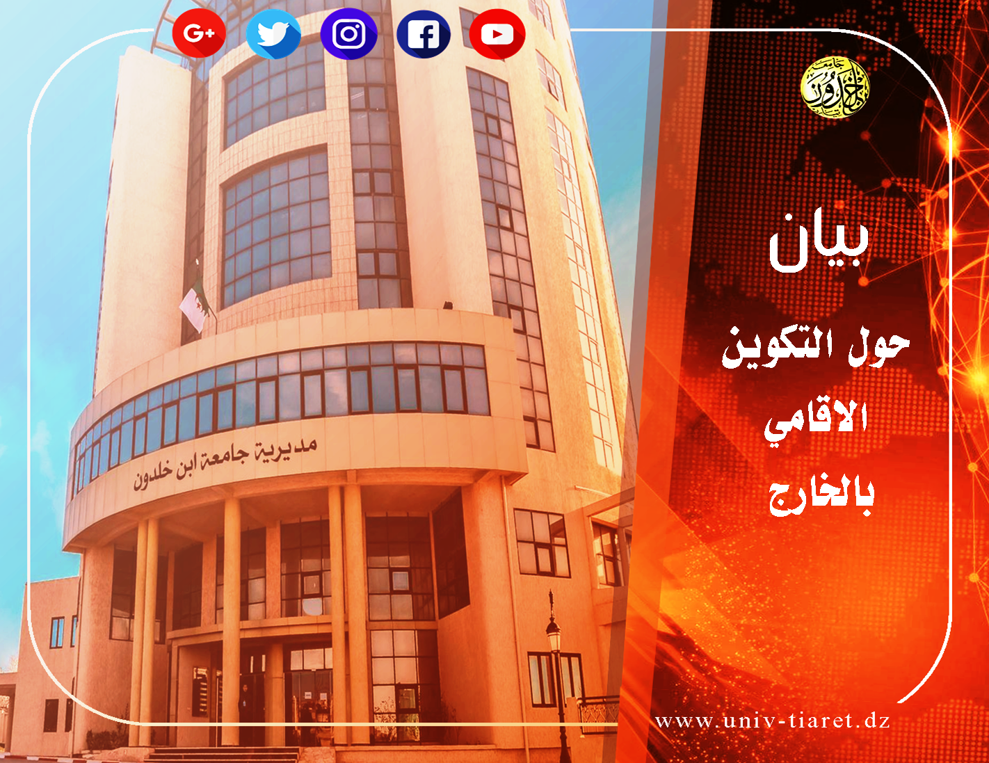 تنهي جامعة ابن خلدون تيارت الى علم جميع الاساتذة ,الباحثين وطلبة الدكتوراه, أن الملحقة الجامعية بالسوقر بصدد تنظيم ملتقى وطني حول الحماية القضائية للحقوق الاساسية والحريات العامة يومي 15 و 16 فيفري 2022