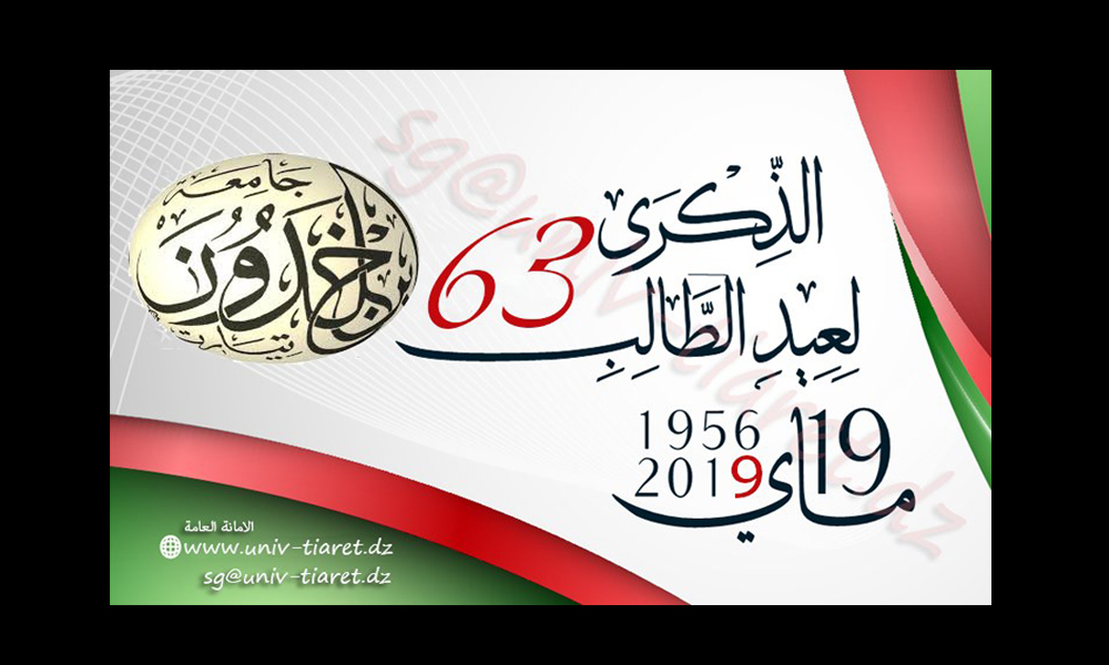 بمبادرة مشتركة لجامعة ابن خلدون ومديرية الخدمات الجامعية وطلبة الجامعة و بمناسبة الذكرى 63 لعيد الطالب المصادف لـ: 19 ماي من كل سنة، نظم إفطار جماعي على شرف الطلبة بمجمع الكليات (سميتال) بحضور السيد مدير الجامعة د.بلفضل شيخ و الأمين العام ونواب المدير وعمداء الكليات وإطارات بالمديرية إلى جانب ذلك إطارات ومدراء الاقامات الجامعية وعمال قطاع الخدمات الجامعية وبحضور الطلبة الأجانب