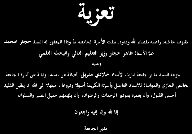 ليكــن في علم كافة الحاصلين على شهادات الليسانس، وخريجي المدارس العليا للأساتذة، من كلا النظامين الكلاسيكي و ل- م –د ، أن كلية العلوم الانسانية والاجتماعية تفتح أبواب الترشح للحصول على شهادة الماستر برسم السنة الجامعية : 2017/2016، بداية من : 01 سبتمبر إلى غاية 15 سبتمبر 2016.