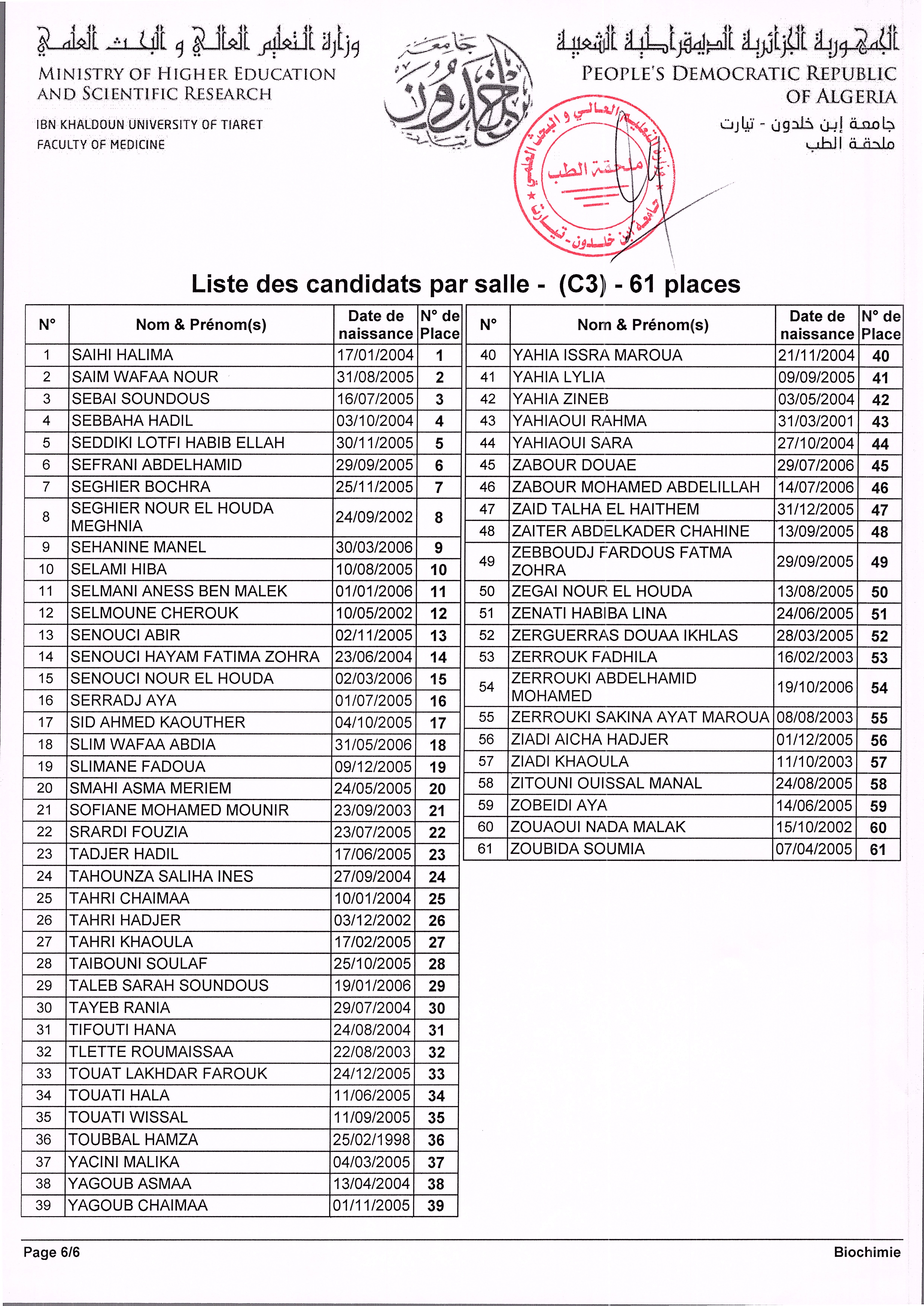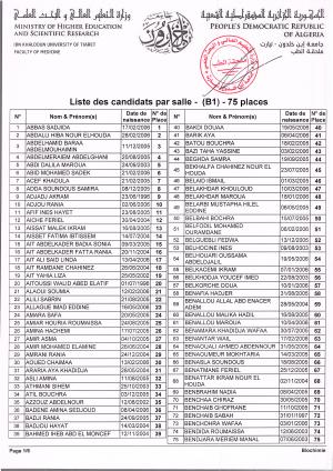 Publié le 20-05-2024Par SAHRAOUI DjamelStructure: Annexe de Médecine Veuillez chers étudiants trouver ci joint la répartition des étudiants par salles d'examens du EMD 2 .