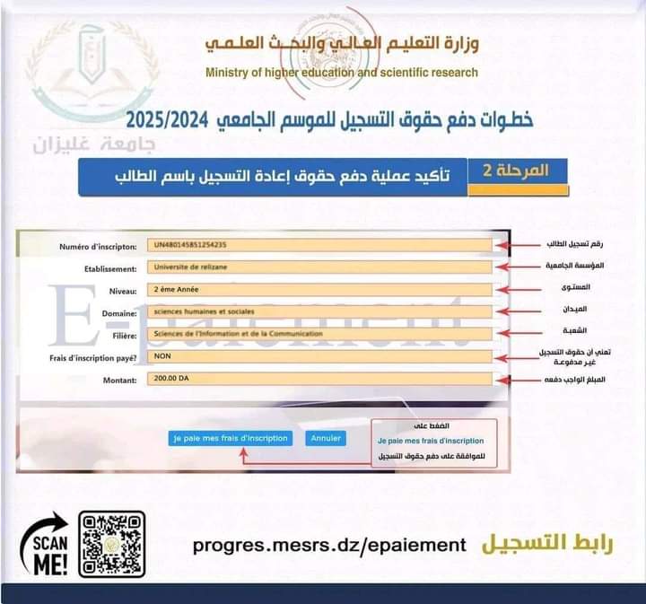 Nous rappelons à nos chers étudiants qui n'ont pas encore effectué les opérations des payement des frais de la réinscription , du transport et d'hébergement que le dernier délai est demain le 05/08/2024 .