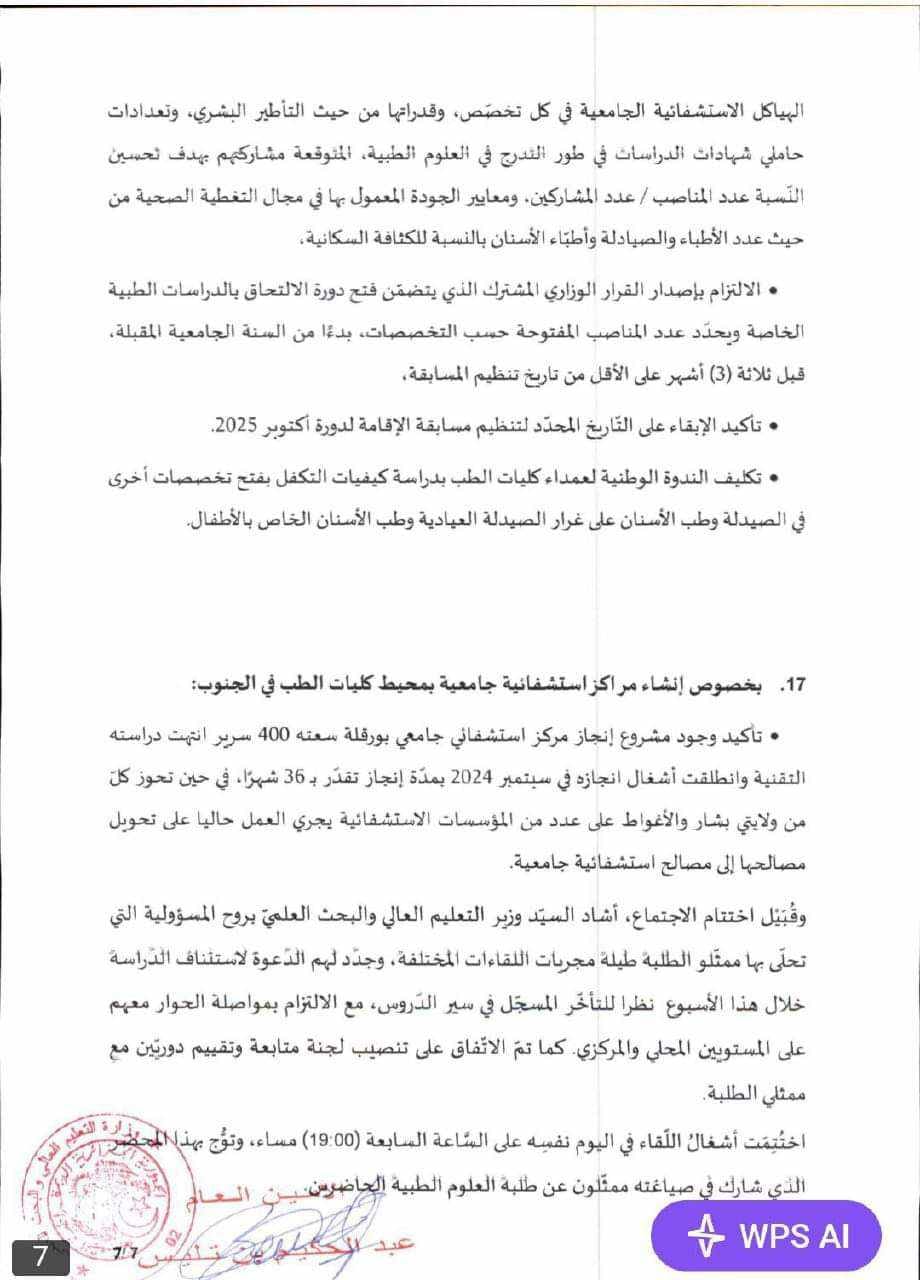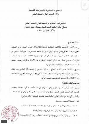 Publié le 02-12-2024Par SAHRAOUI DjamelStructure: Annexe de Médecine تجدون في الوثائق الملحقة محضر لقاء السيد وزير التعليم العالي و البحث العلمي مع طلبة العلوم الطبية بتاريخ 01 ديسمبر 2024 .