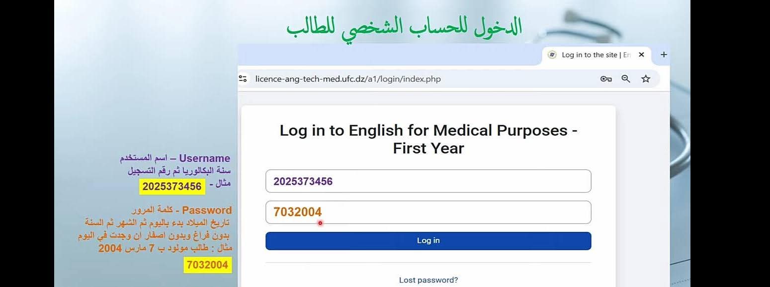 Reminder for first-year students who were unable to access the Medical English learning platform.