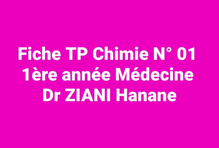 Veuillez trouver ci-joint la fiche TP Chimie N° 01".